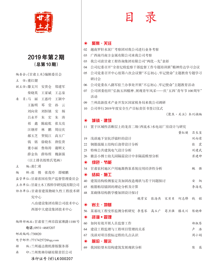 《甘肅土木》總第10期(2019.6)