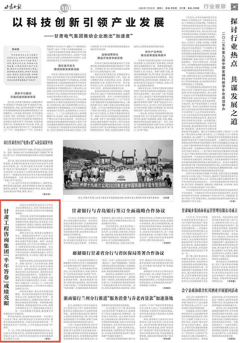 下一步,甘肅工程咨詢集團將繼續錨定目標,以昂揚斗志和務實作風,持續提升服務經濟社會發展的能力與水平,為譜寫中國式現代化甘肅實踐新篇章貢獻更大力量。