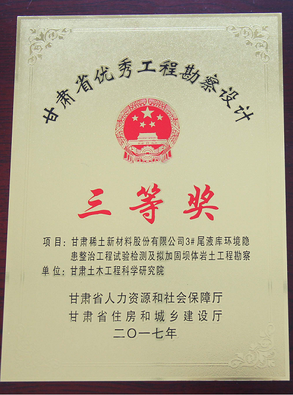 2.獲2017年度甘肅省優(yōu)秀工程勘察設(shè)計三等獎。